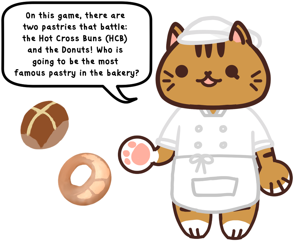 Players: Hot Cross Bun and Donut, and their collapsible forms (rotating animation)